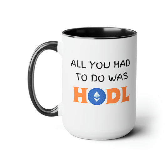 All you had to do was HODL | Crypto | Ethereum | Two-Tone Coffee Mugs, 15oz | Funny